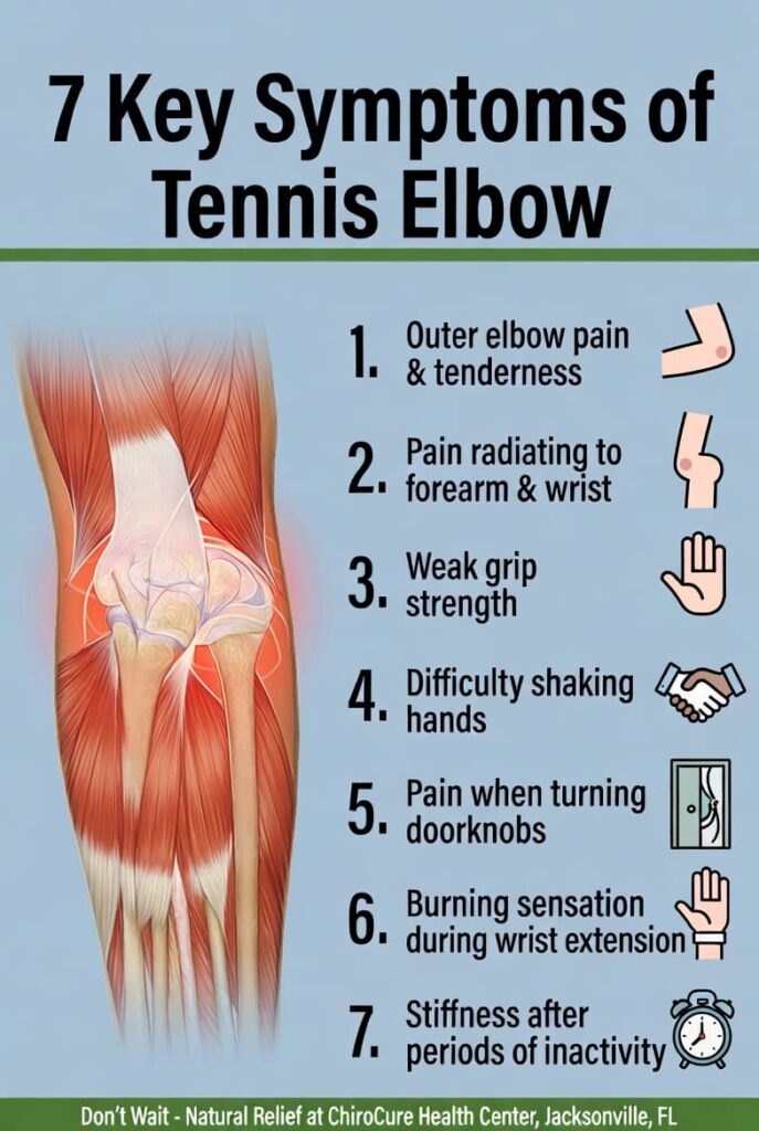 At ChiroCure Health Center in Jacksonville, Florida, we see patients from all walks of life—busy parents, weekend warriors, office workers, and professional truck drivers—struggling with this frustrating condition. The good news? You don’t have to rely on pain medications, steroid injections, or surgery to recover. Gentle, evidence-based chiropractic care addresses the root cause of tennis elbow, helping restore mobility, reduce inflammation, and prevent recurrence—naturally.